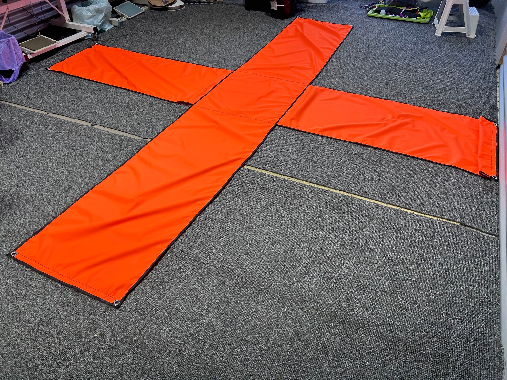 Highly visible bright-orange crest for marking a safe landing area during operations and demonstration jumps. Designed for quick deployment and maximum visibility, it can be pegged securely to the ground to withstand wind and ensure clear, unambiguous marking for jumpers and ground crew alike.
